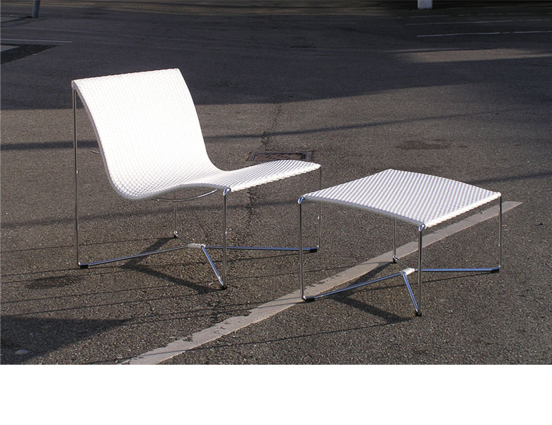 Title: Relax chaise long and chair. Type: Part of an outdoor furniture program. Material: Stainless steel and plastic polymers. Date: 2007